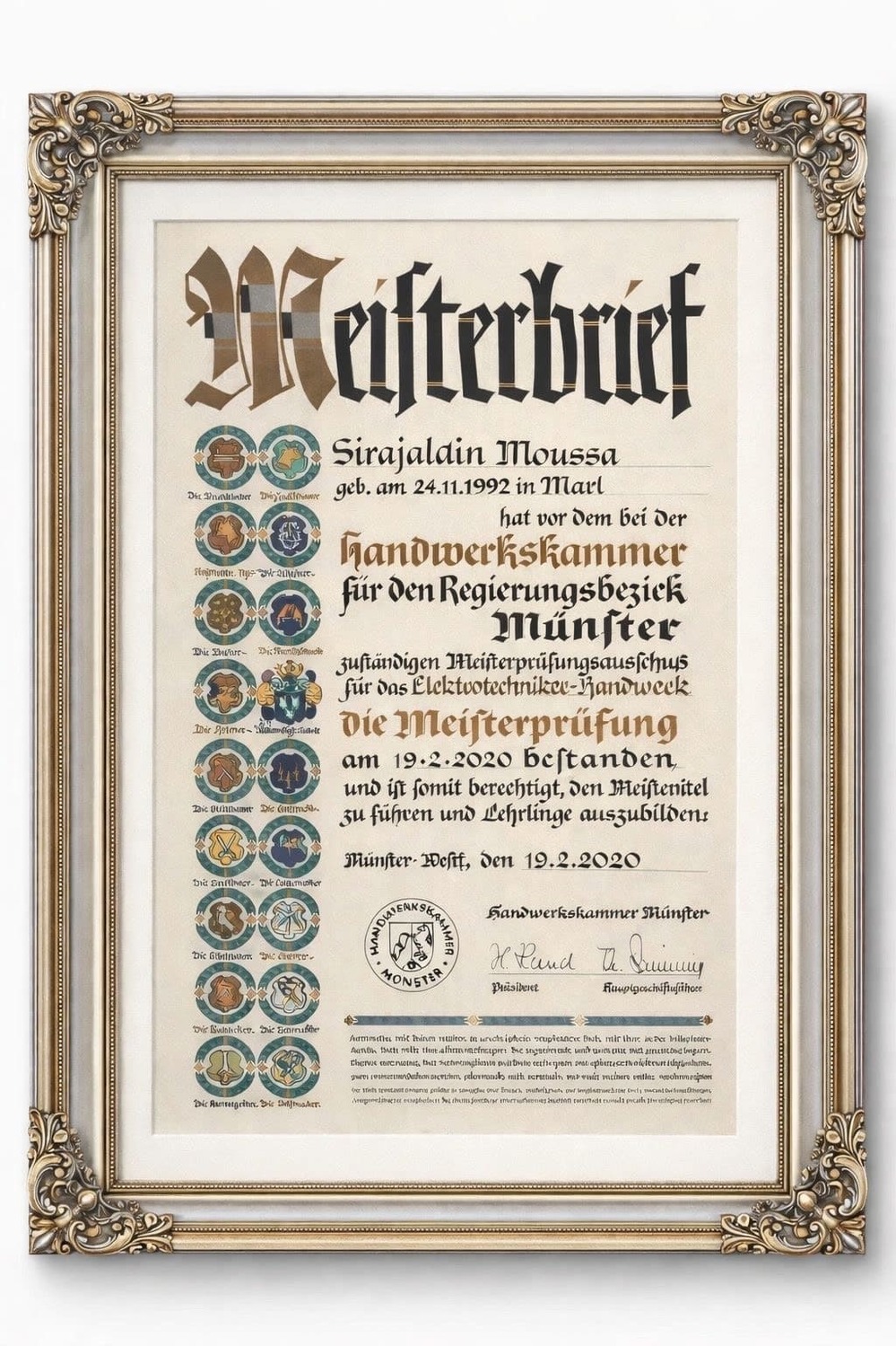 Als zertifizierter Meisterbetrieb stehen wir für fachliche Kompetenz, höchste Qualitätsstandards und langjährige Erfahrung in der modernen Elektrotechnik.